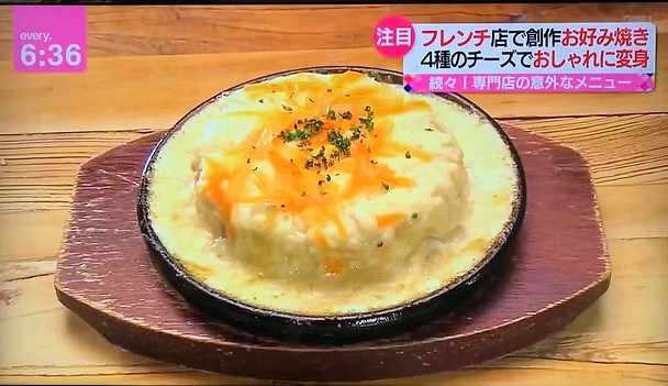 日テレ「news every」の「専門店の意外なメニュー特集」にてTchin-TchinGOROのフレンチお好み焼が紹介されました。