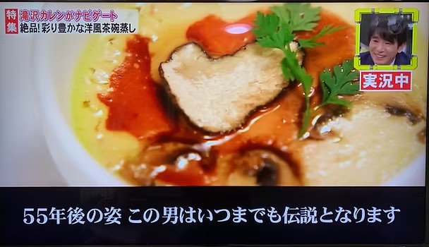 フジテレビ「全力!脱力タイムズ」の人気コーナー滝沢カレンの「美食遺産」にてTchin-TchinGOROの「きのこ香るトリュフの洋風茶碗蒸し」が紹介されました。