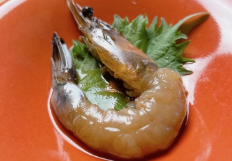天使の海老というブランド海老を紹興酒をベースにしたタレに漬け込みました