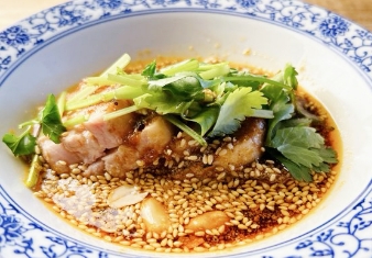 丁寧に低温調理した鶏むね肉を使用。柔らかく自家製タレが食欲をそそる。